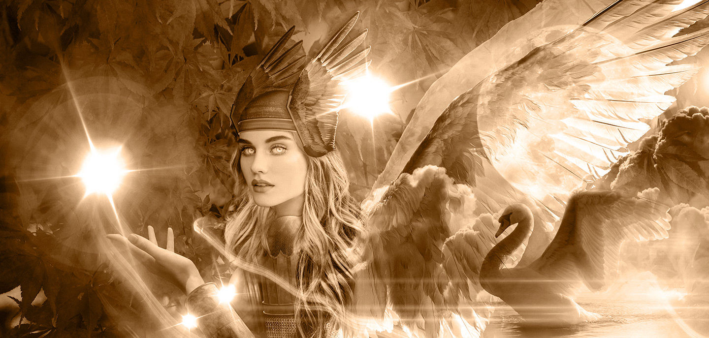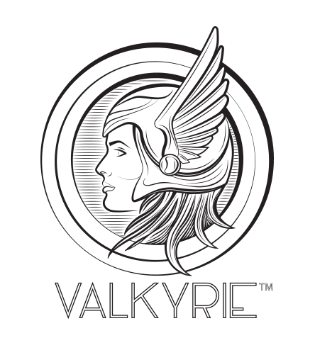 The Valkyrie logo text is composed in the typeface, Manifesto, by Tomaz Leskovec.